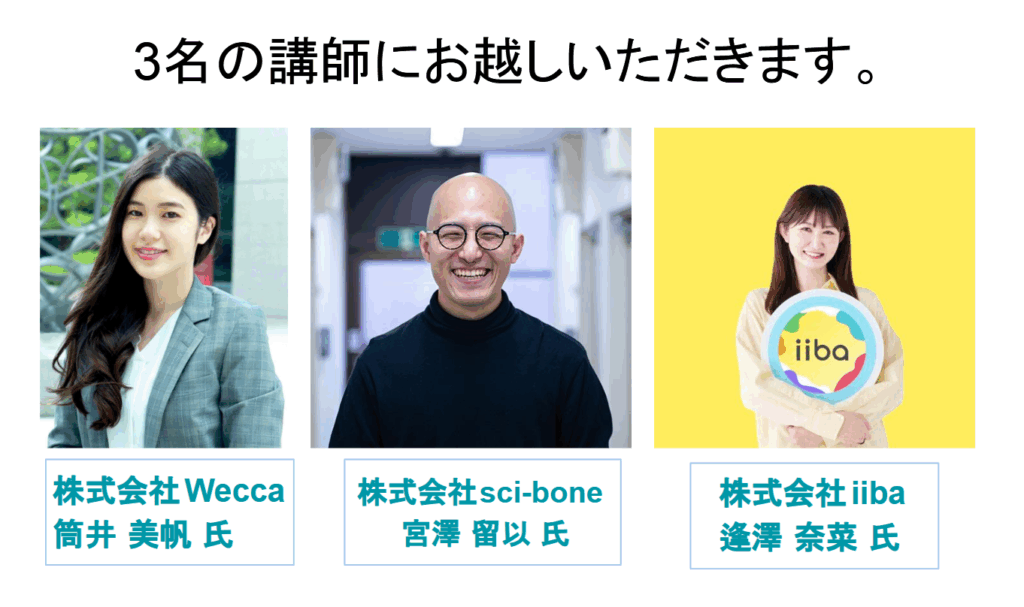 今回は学生向けの企画で、8月中旬~9月上旬の毎週水曜日、4日間で開催されるインターンシップ体験を実施予定で、当会からもメンバーが参加できるといいなと考えております。